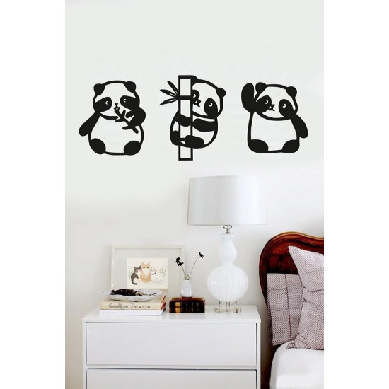 Panda 3lü Duvar Dekoru Siyah Ahşap Lazer Tablo